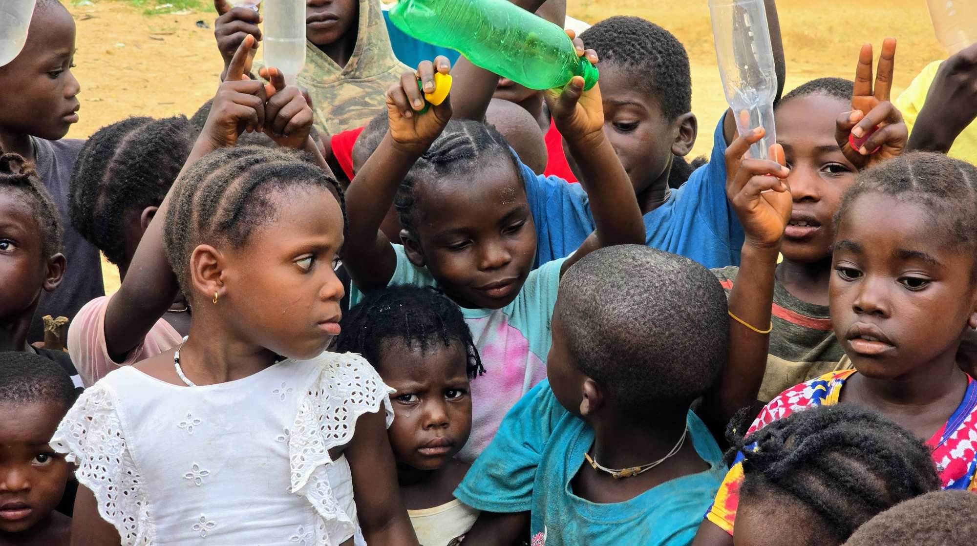 More than 50 children stood by holding plastic bottles of all colors and sizes, eagerly waiting to be served. Their ages range from 2 to 12. Although most have reached school-age, they aren’t yet in school because their parents can’t afford the uniforms, including shoes, let alone the tuition.